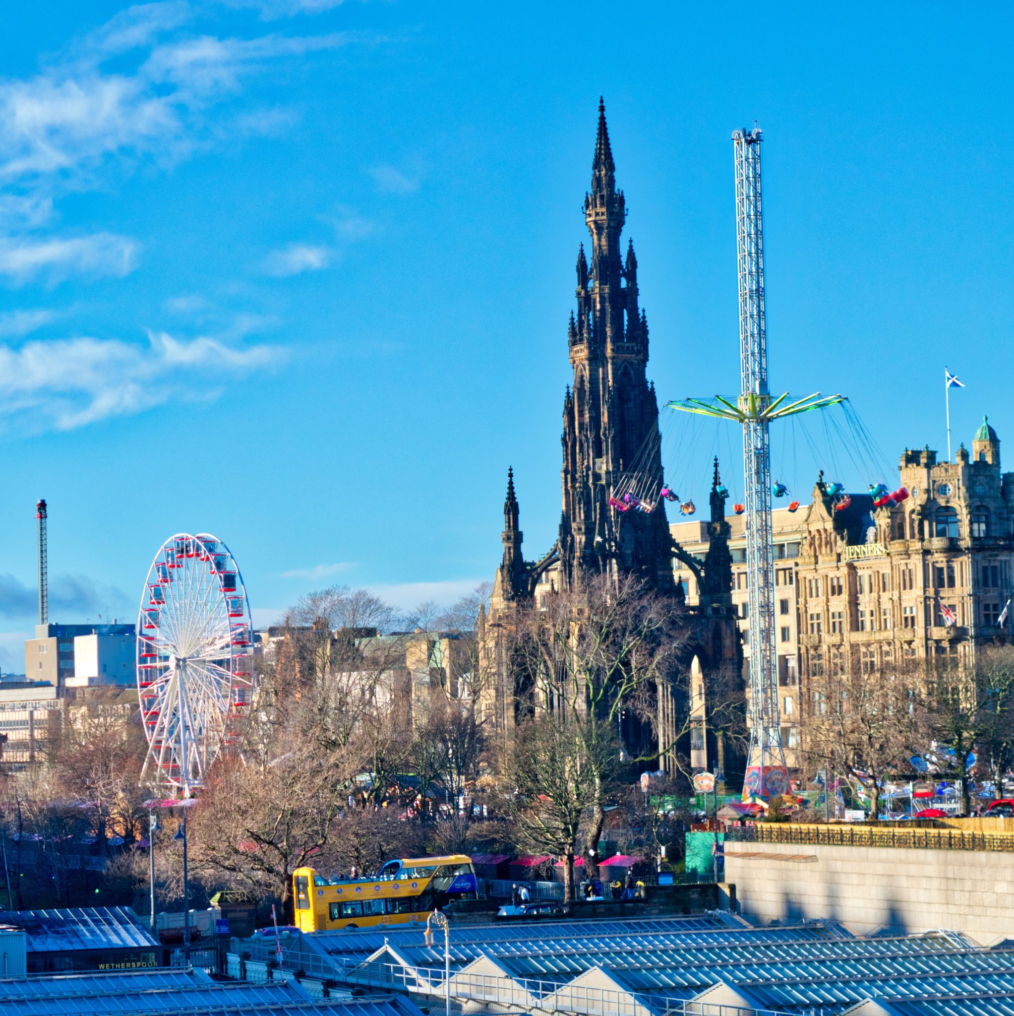 Edinburgh was dressed in white. Snowed but sunny, perfect for an early start. We walked through the streets of the old Town, crossing Grassmarket and visiting Greyfriars Kirkyard. We took a break at The City Cafe. Then, we strolled up to the Carlton Hill and returned back to New Town. Boxing day without shopping isn’t fair. Yet, most time spent in Waterstones’ Bookshop. A brief stop for beer at Queens Arms pub and there we went to open Christmas market to get a bit childish again. Escorting the kids, was the perfect excuse for a ride in the Big Wheel and the Star Flyer.