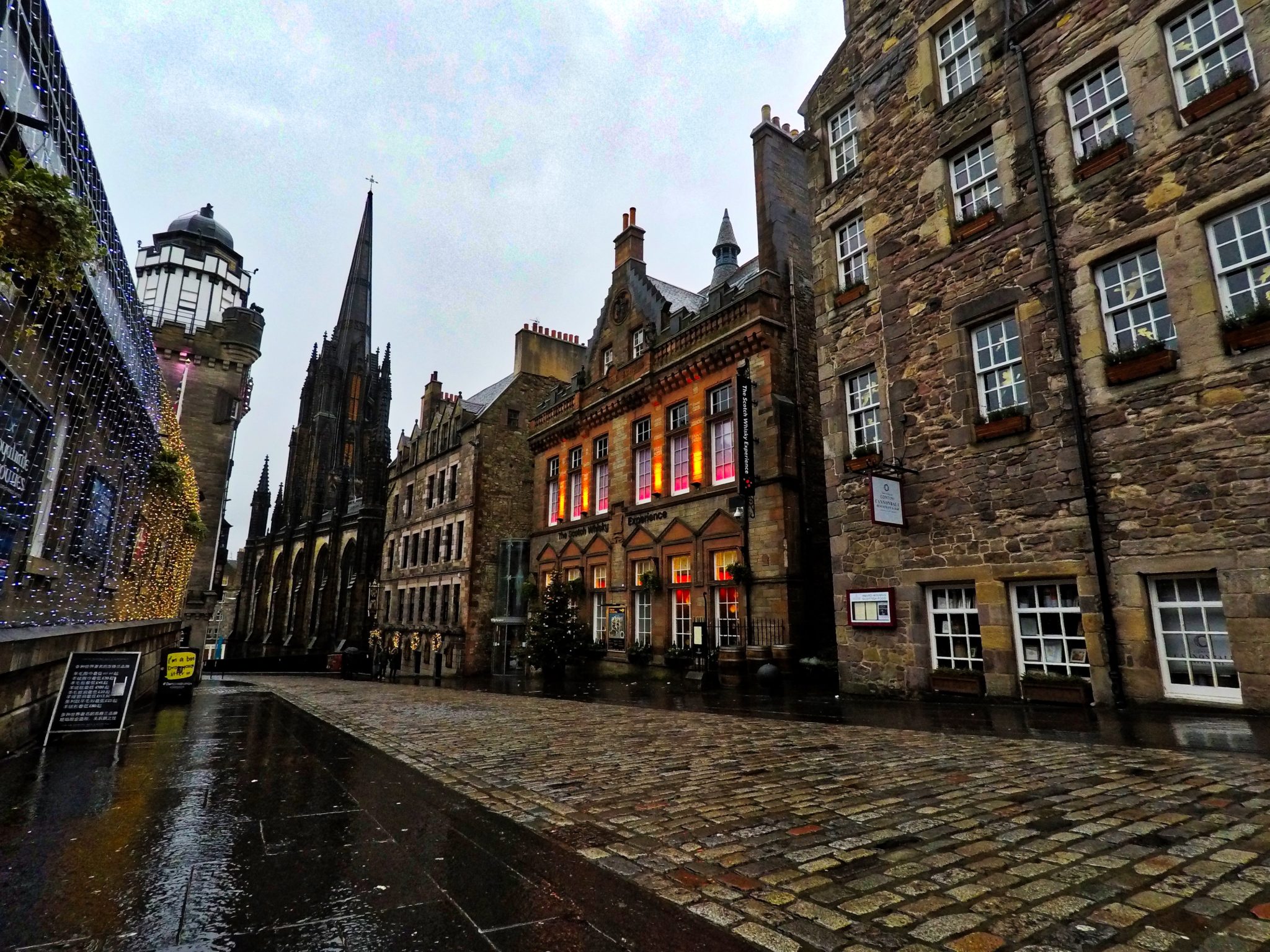 Xmas day. As expected, we woke up in a ghost town; no one out there, everything was closed. A typical Scottish day, drizzle and heavy rain in turns and pure cold. Who said that it would be a wasted one though. We walked up to the castle and through the Royal Mile. Coffee break to one of the few places to be found running this day at the lobby of Ibis Hotel. Then, we attended the Christmas service in St Giles cathedral. Believer or not, a unique experience. Following feeding expedition ended at Milnes pub, our only option but, at least, we found something decent to eat and to take shelter for a couple of hours. This time I tasted Toddy,- hot single malt with herbs.