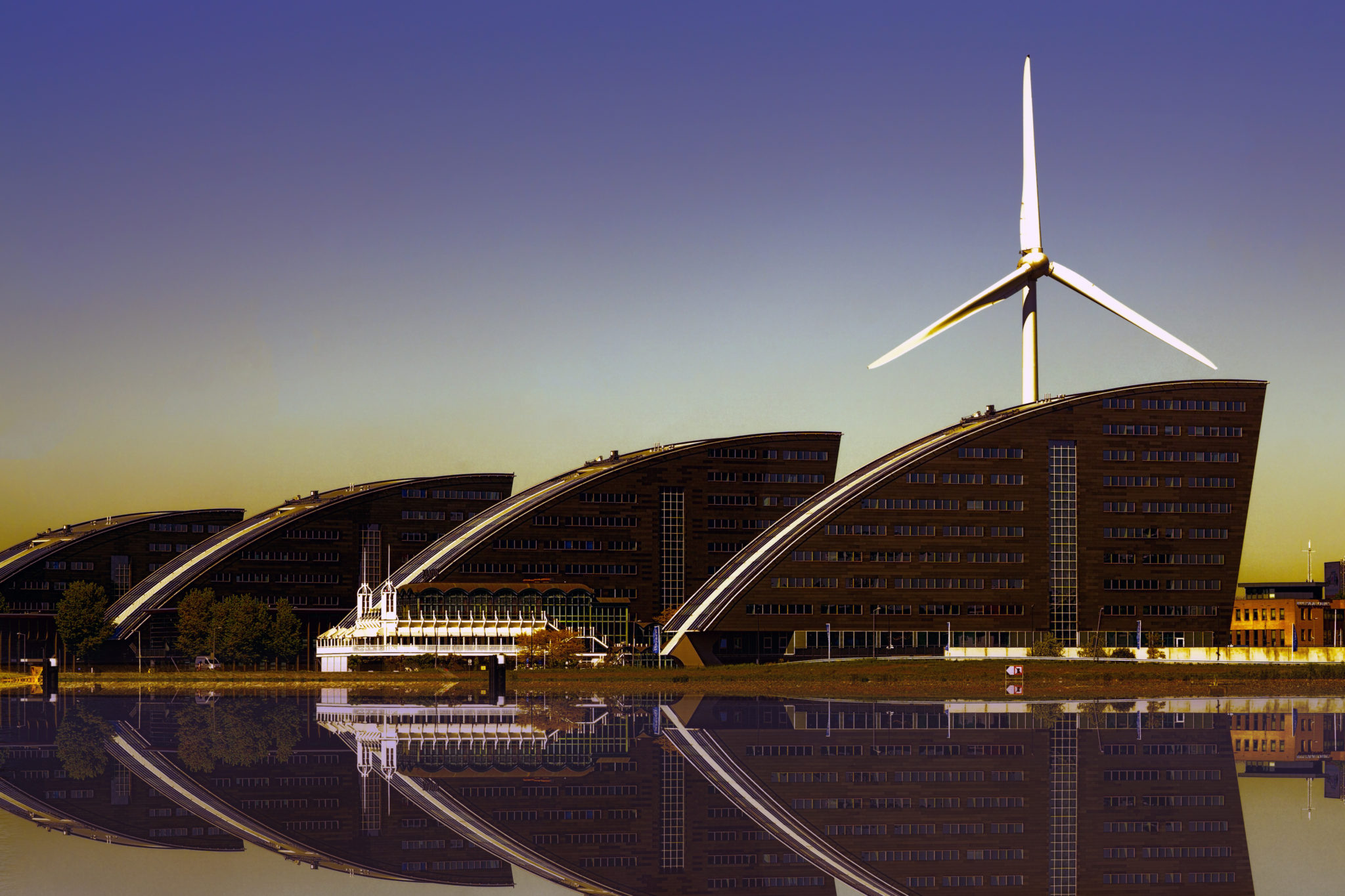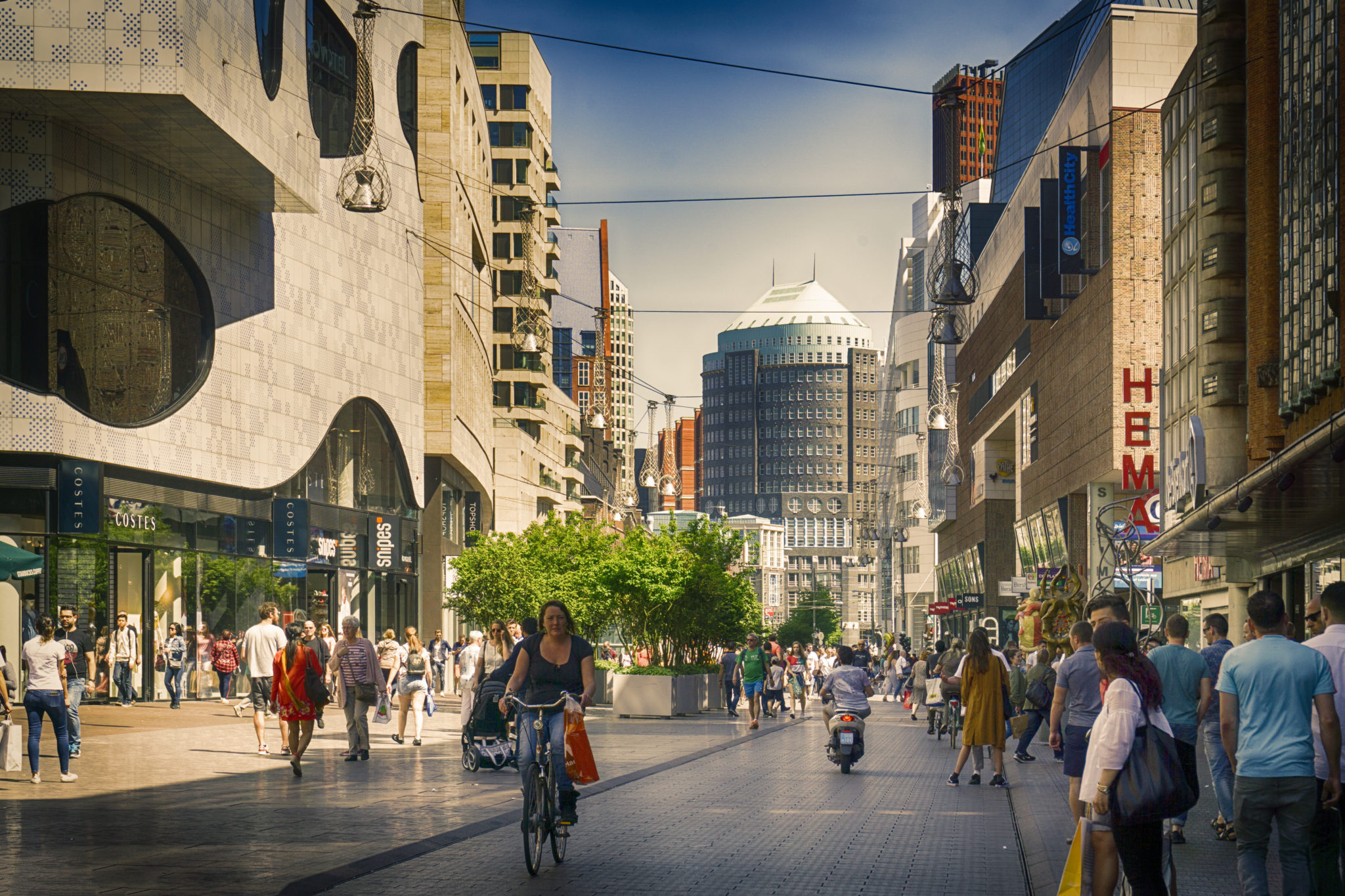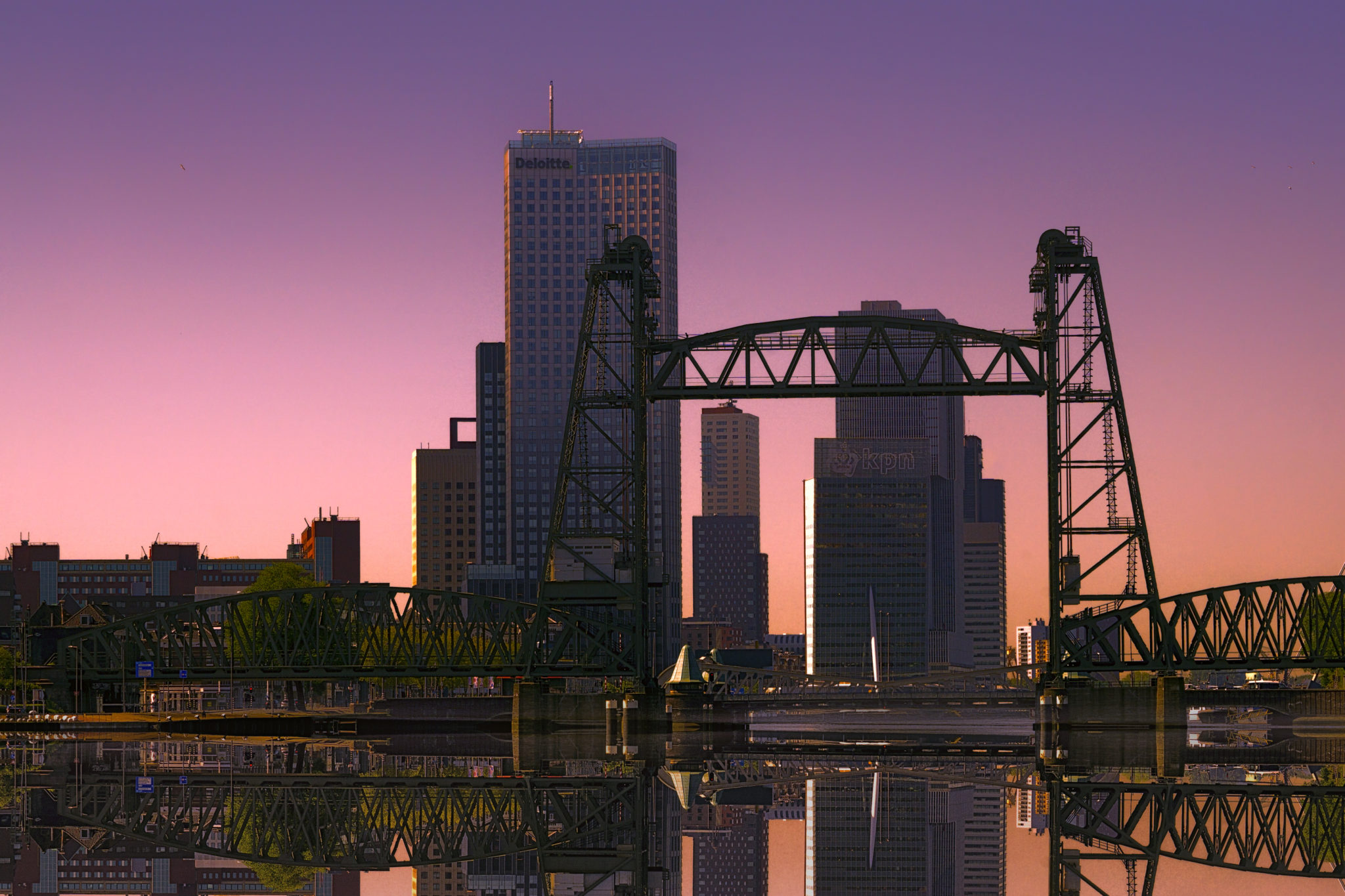 Rotterdam is known for the Erasmus University, its riverside setting, lively cultural life, and maritime heritage. The near-complete destruction of the city centre in the World War II Rotterdam Blitz has resulted in a varied architectural landscape, including sky-scrapers (an uncommon sight in other Dutch cities) designed by renowned architects such as Rem Koolhaas, Piet Blom, and Ben van Berkel. Rotterdam’s logistic success is based on its strategic location by the North Sea, at the mouth of the Nieuwe Maas channel leading into the Rhine–Meuse–Scheldt delta. The rivers Rhine, Meuse, and Scheldt give waterway access into the heart of Western Europe, including the highly industrialized Ruhr. The extensive distribution system including rail, roads, and waterways have earned Rotterdam the nicknames “Gateway to Europe” and “Gateway to the World”.